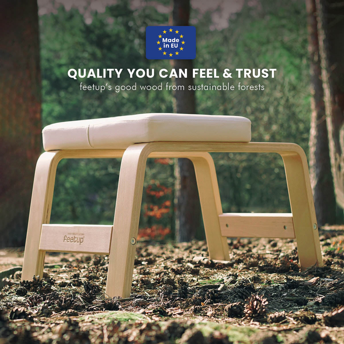 Der FeetUp Trainer hilft dir, auf einzigartige und schonende Weise den Kopfstand zu üben. Das Körpergewicht ist dabei gleichmäßig auf den Schultern verteilt, während der Kopf sanft nach unten hängt und die Halswirbelsäule entlastet wird. Der FeetUp Trainer wird in Europa aus nachhaltig produzierten Materialien hergestellt und ist das beste Yoga-Zubehör, um mehr Kraft, Flexibilität und Gleichgewicht aufzubauen.
