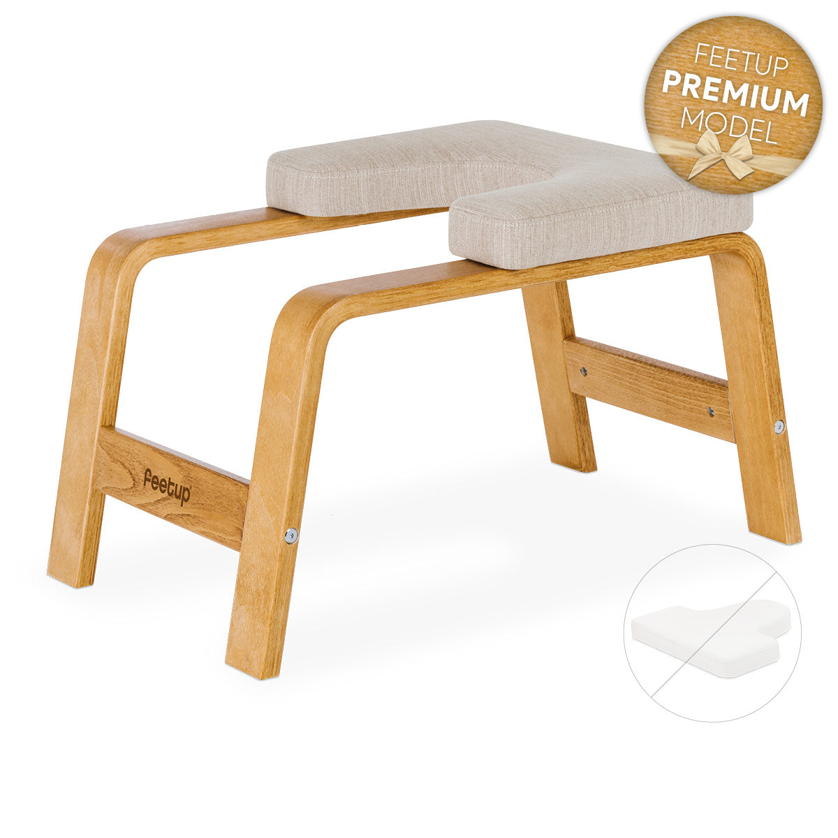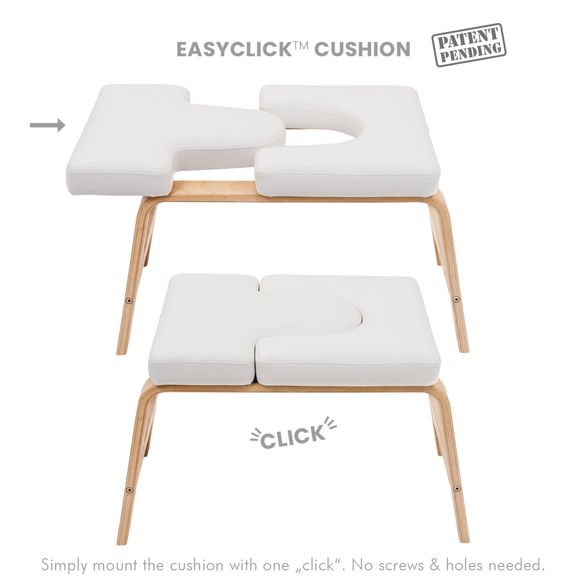Sie können das Gleichgewicht leicht halten, indem Sie sich am stabilen Rahmen des FeetUp Trainers festhalten. Dank des bequemen Kissens ist es einfacher, sich während einer Umkehrhaltung über längere Zeit zu entspannen.